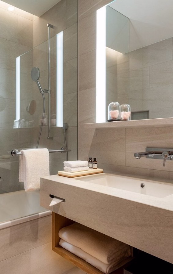 Questo modello trova la sua massima espressione nel bagno ma può essere posizionato in altre zone della casa. Può essere dotato di illuminazione dimmerabile, controller touch a vetro e sistema anti-appannamento.