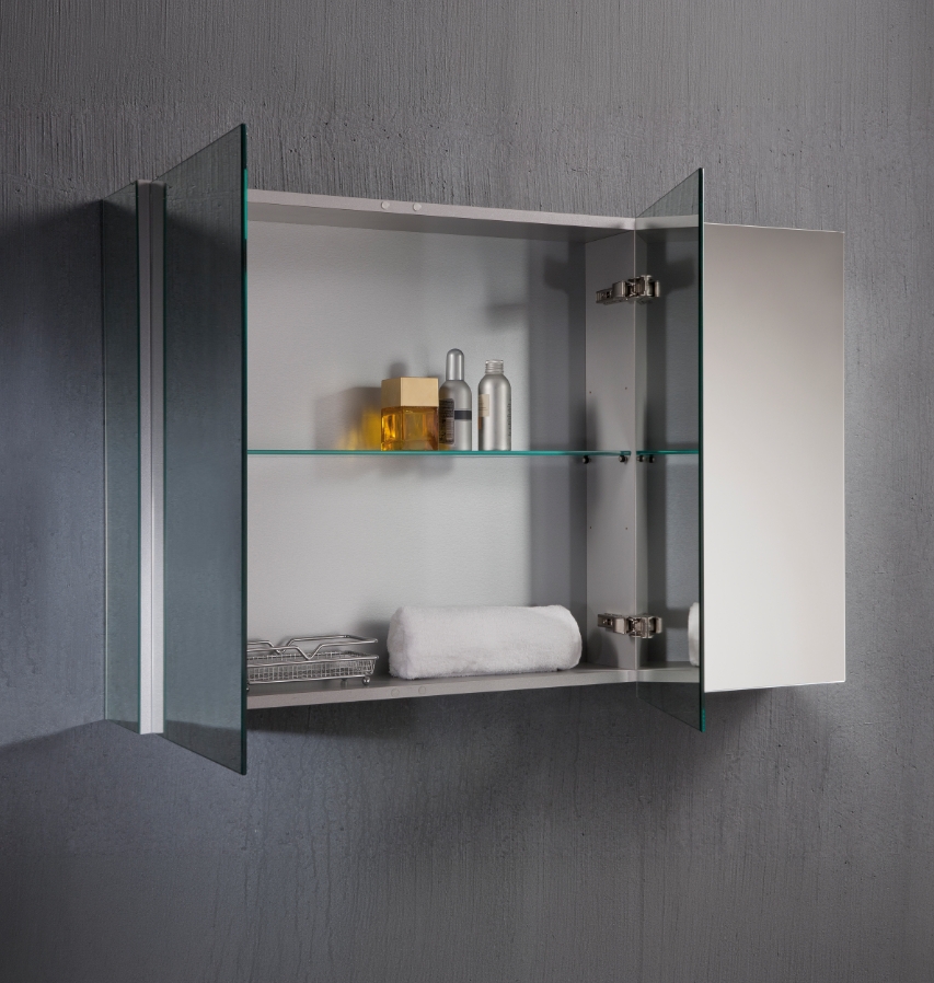 Lo specchio Tre+Tre è uno dei modelli più generosi fra gli specchi contenitore, ma conserva una propozionalità e un design che lo rendono un complemento d’arredo unico. Con tre ante, lo specchio garantisce spazio e facilità di utilizzo per l’utente, mentre l’interno è completato da un ripiano in vetro temperato da sei mm.